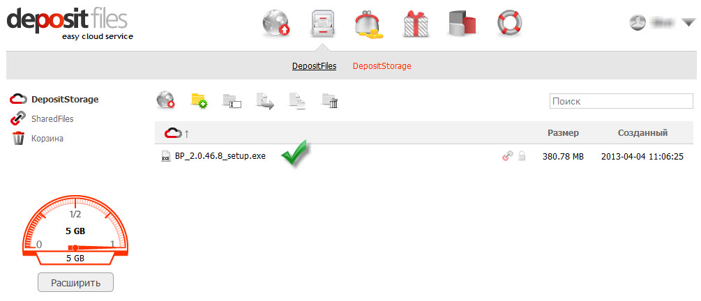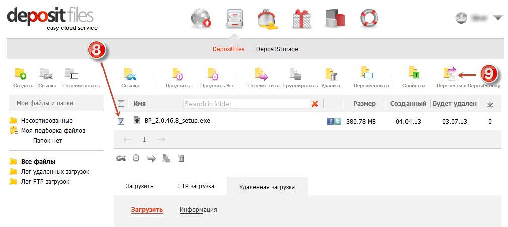 Качаем с DepositFiles на максимальной скорости ... бесплатно и ... без капчи: [more]Качаем с DepositFiles на максимальной скорости ... бесплатно и ... без капчи: Не так давно (в конце 2012) DepositFiles запустил сервис под названием DepositStorage. Облачное хранилище DepositStorage предоставляет для бесплатного хранения файлов объем в 5 GB. Время хранения файлов ограничено лишь вашим желанием. Именно при помощи DepositStorage вы можете без особых ограничений (за раз 5 гиг максимум) качать с DepositFiles. Теперь по порядку: 1. Регистрируемся на DepositFiles. 2. Активируем сервис DepositStorage. ![]() 3. Загружаем файл, залитый на DepositFiles, в свой DepositStorage. -1. Переходим в раздел "Мои файлы" -2. Идем в "DepositFiles" -3. Выбираем "Удаленная загрузка". -4. Вставляем URL файла, который надо загрузить. -5. Жмем "Закрузить" ![]() -6. ОК ![]() -7. Переходим в папку "Все файлы" и видим загруженный нами файл. ![]() -8. Отмечаем файл(ы), которые надо перенести в DepositStorage. -9. Жмем на "перенести в DepositStorage". ![]() -10. Ссылку нам сохранять не надо, поэтому ставим "Нет" и жмем на "Готово". ![]() 4. Переходим в DepositStorage и видим там нужный нам файл. ![]() 5. Кликаем на нужный нам файл и забираем его с помощью Internet Download Manager (IDM) ![]() Качается со скоростью вашего подключения к и-нету. Есть докачка![/more] |