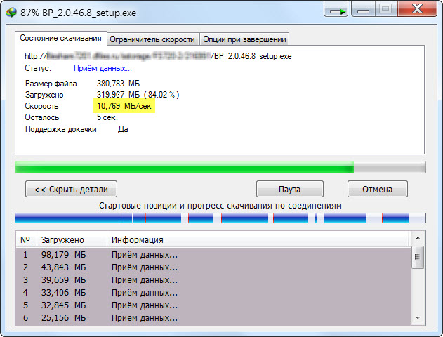 Сергей, у меня около полугода качается с Депозита на максимальной скорости (2 мбтс) и без этих танцев...